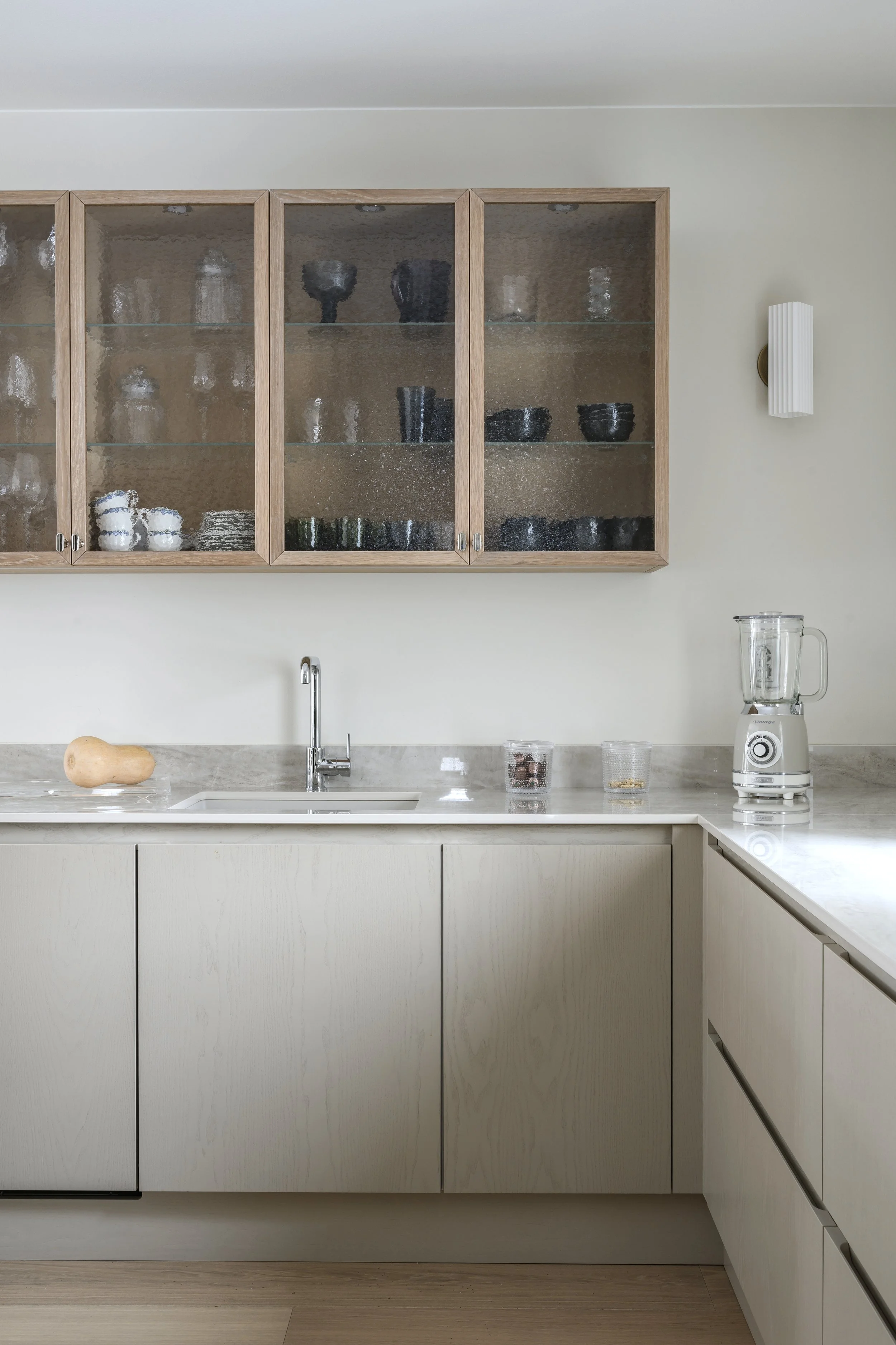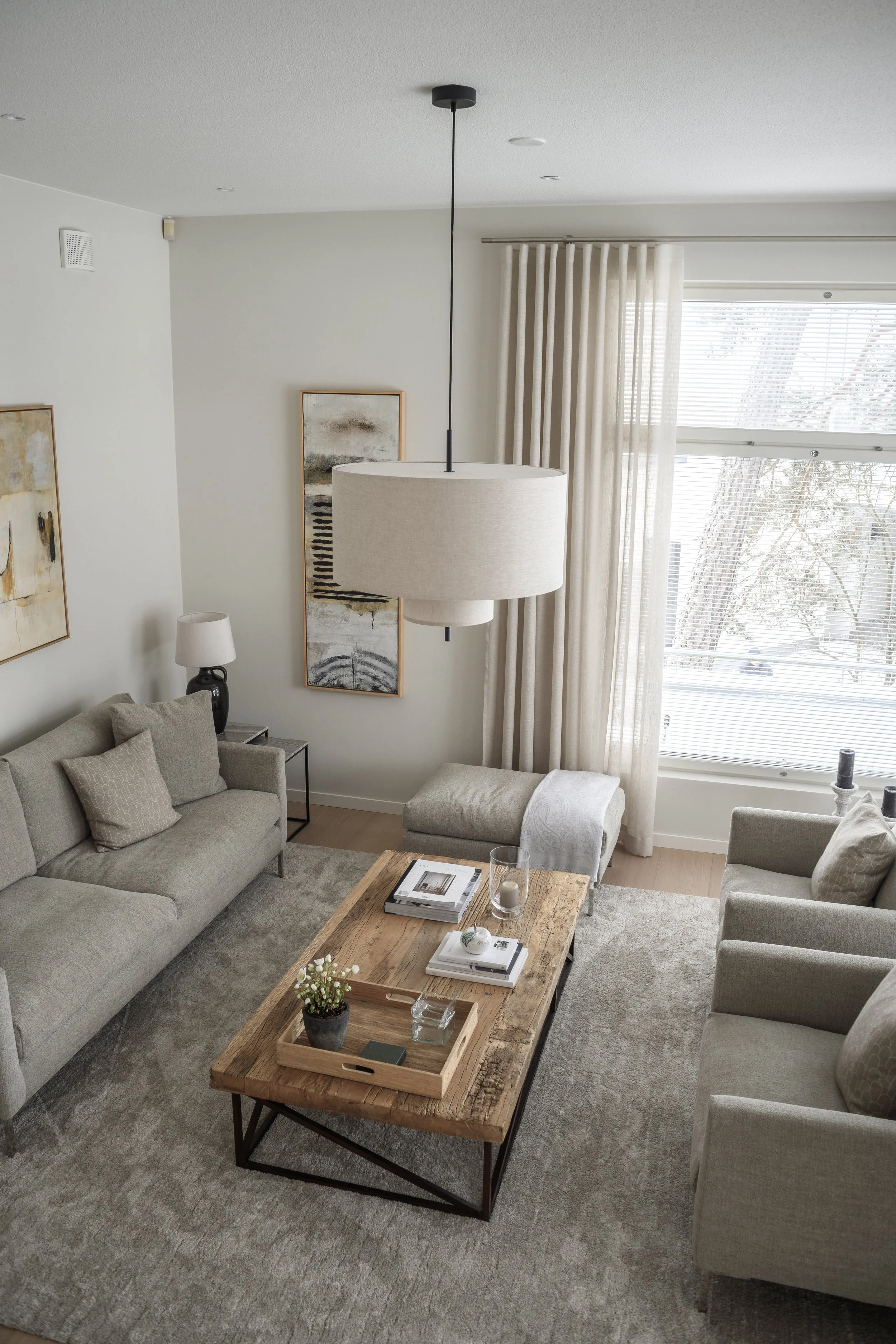 Tämän kodin lähes kaikki pinnat uusittiin. Myös keittiö koki suuren muutoksen. Pehmeät hiekan sävyt toistuvat niin pinnoissa kuin tekstiileissäkin. Lopputulos on lämmin ja harmooninen.