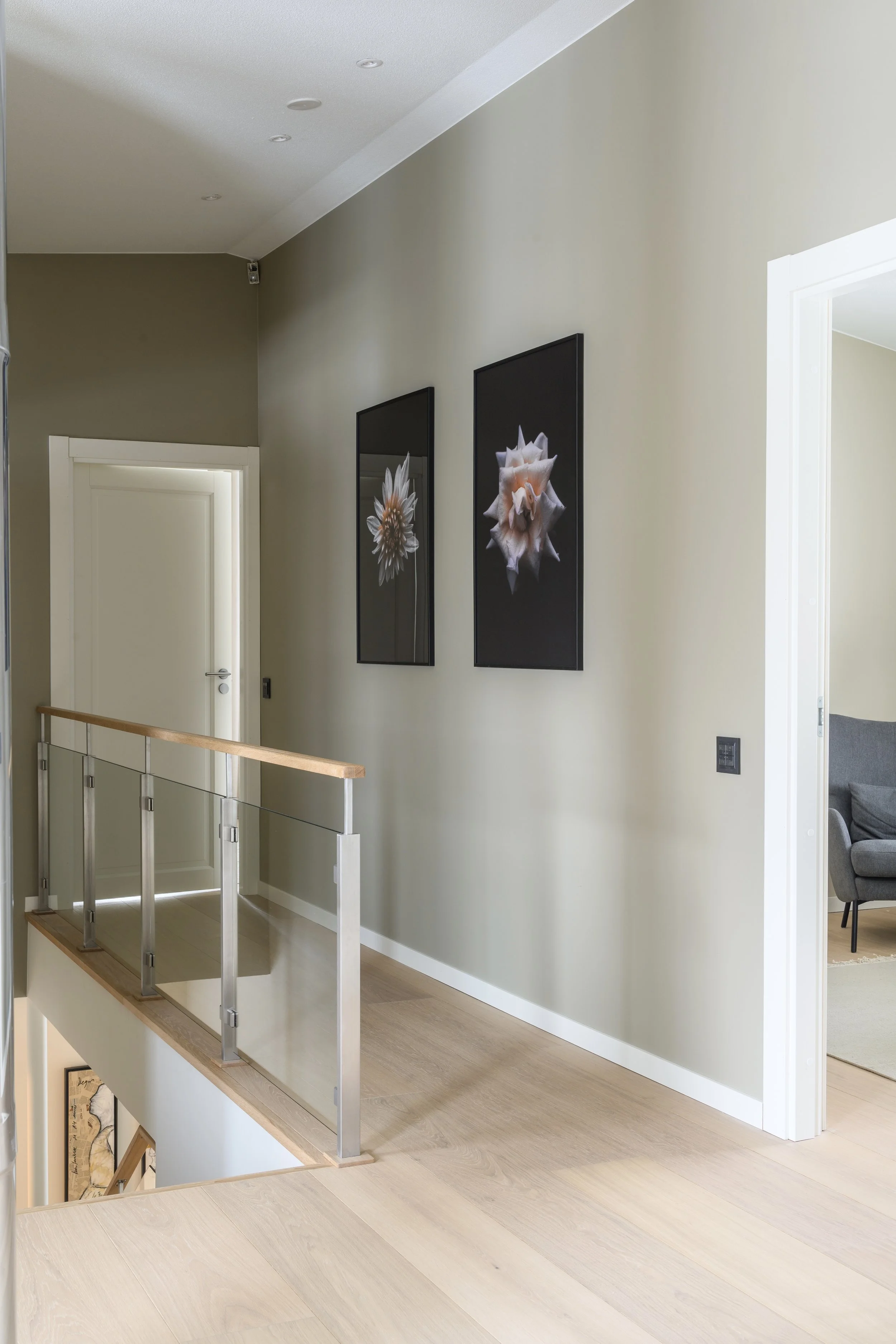 Asiakkaiden upeasti remontoimaan kesäkotiin tarvittiin kaikki irtokalusteet ja tekstiilit. Perheelle tärkeitä jo vuosikymmeniä suvussa kulkeneita kalusteita verhoiltiin ja entisöitiin. Modernit kalusteet ja valaisimet täydensivät kokonaisuutta. Värimaailma on neutraali koska tässä kesäkodissa ikkunoista avautuva luonto on pääosassa.